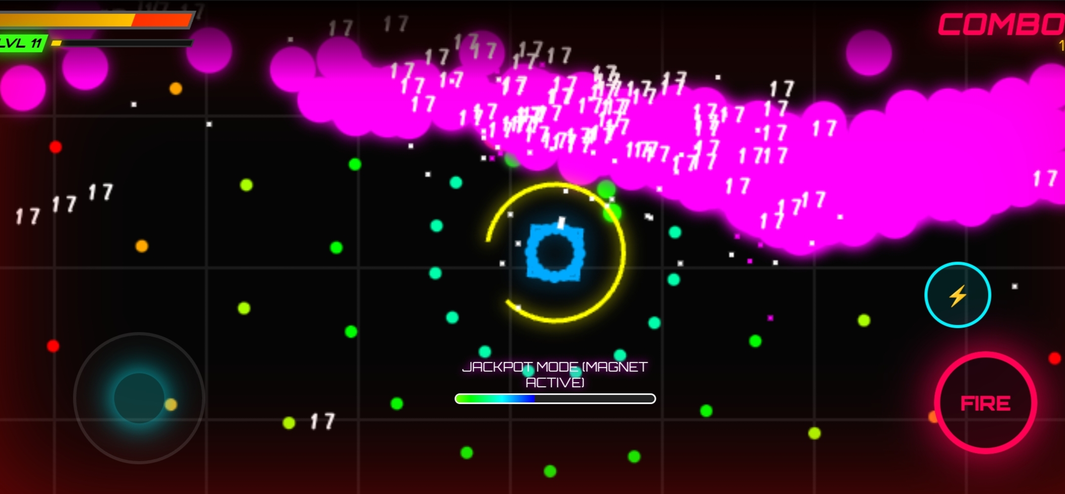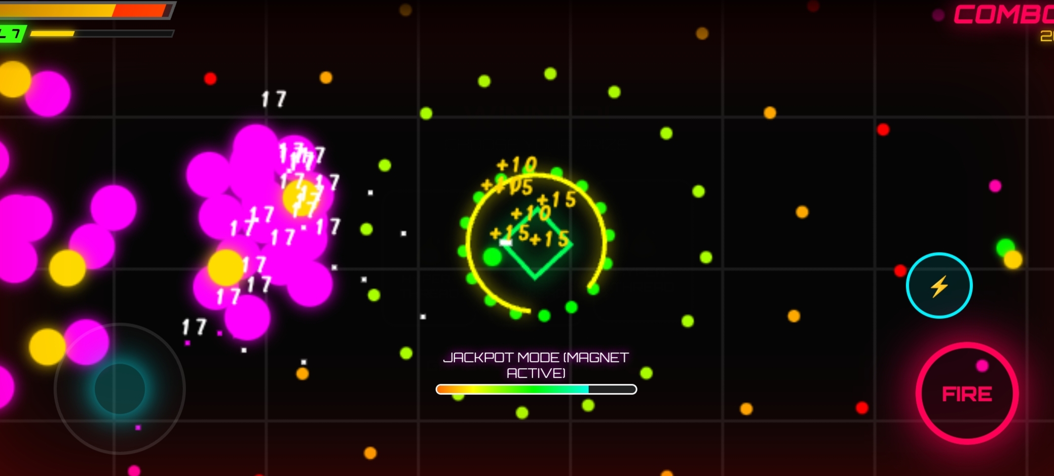 🎰 The Slot Machine Progression: Every level-up is a gamble. Stack power-ups like Orbiting Neon Shields, Multi-Guns, and Thunder Strikes.